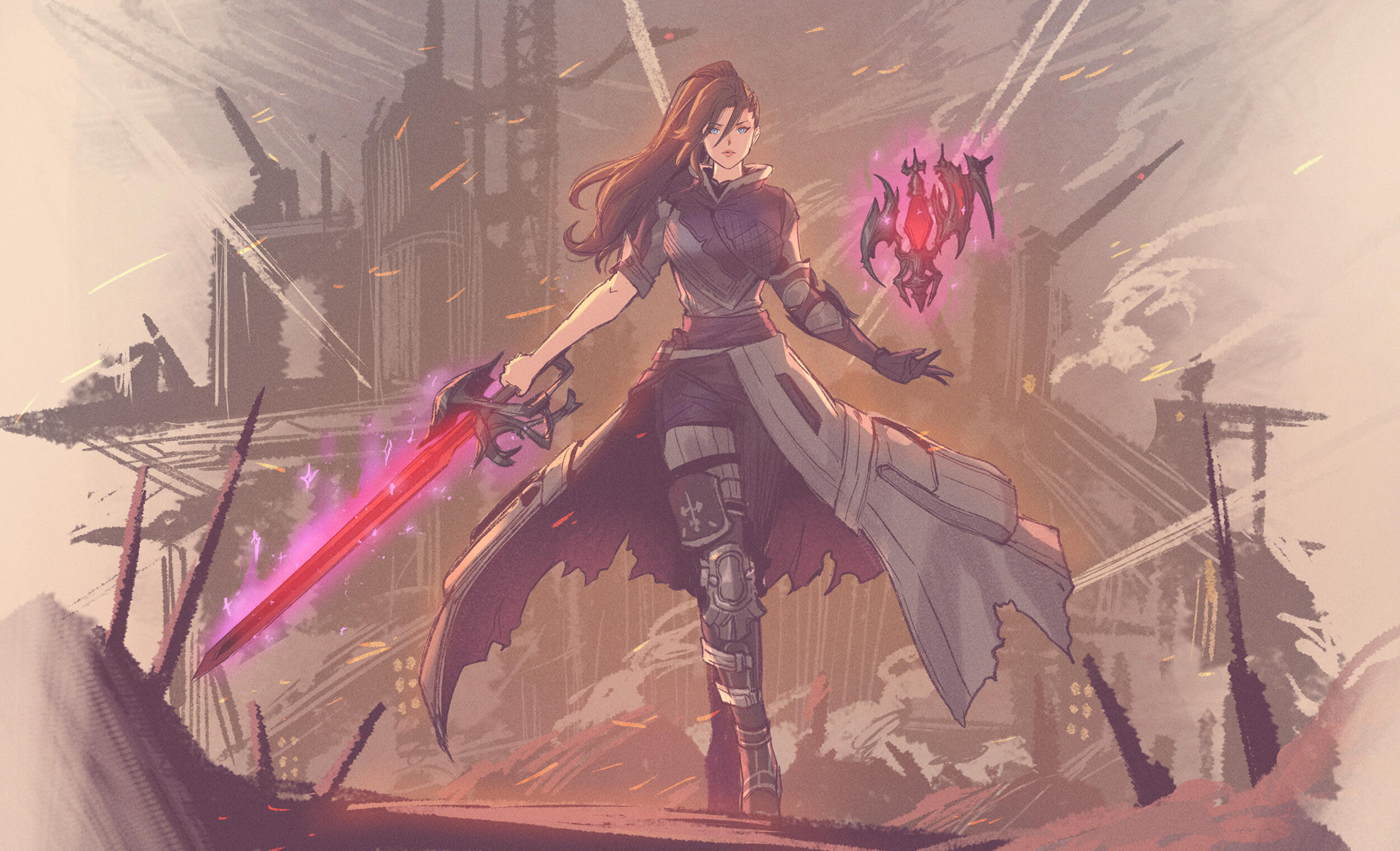 As a practitioner of red magic, Hildegard highly values self-discipline. She is dedicated to honing both her swordsmanship and magecraft, and is ever keen to push her limits. She has a particular interest in medicine, an odd fixation for one who's profession is bloodshed, but it may also be a glimpse of her past.